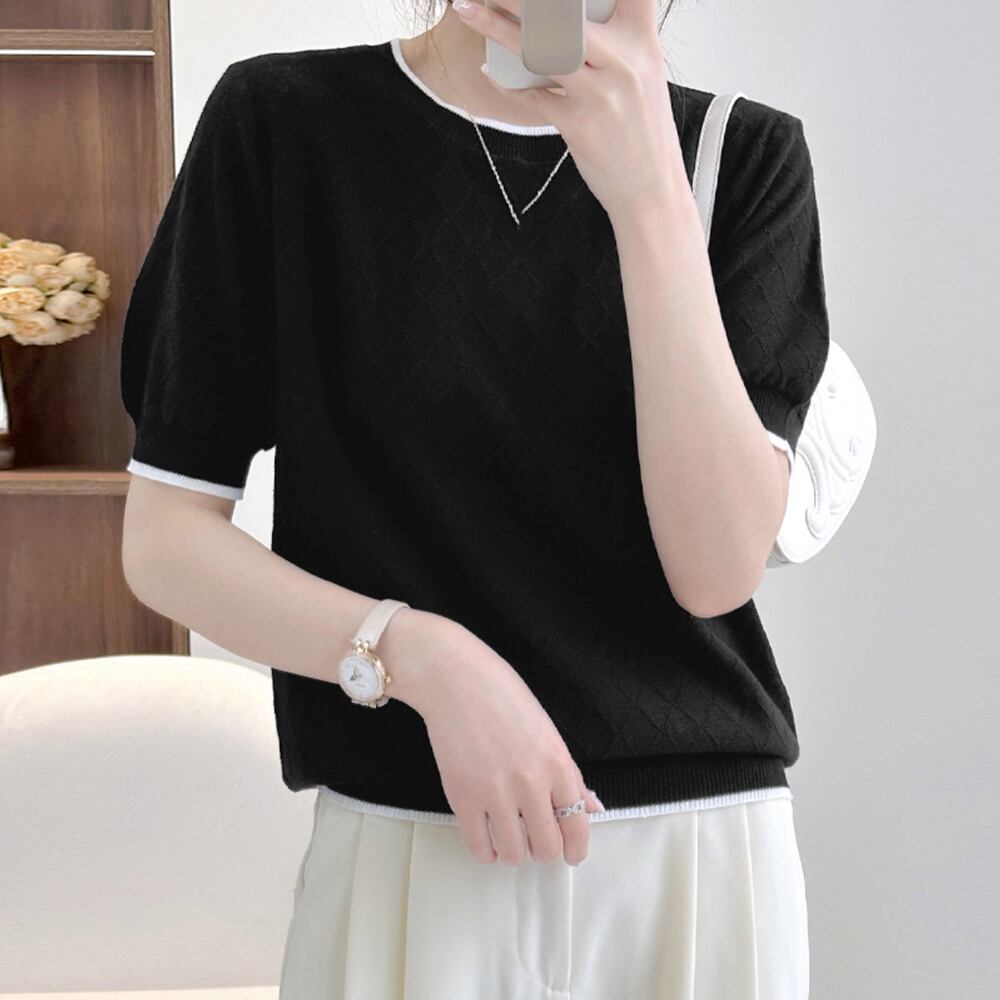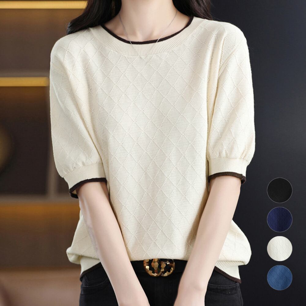 夏にぴったりな、軽やかでおしゃれなパイピング サマーニットが登場!柔らかなニット素材は通気性が良く、快適な着心地を実現。シンプルなデザインにパイピングがアクセントとなり、華やかさをプラスします。