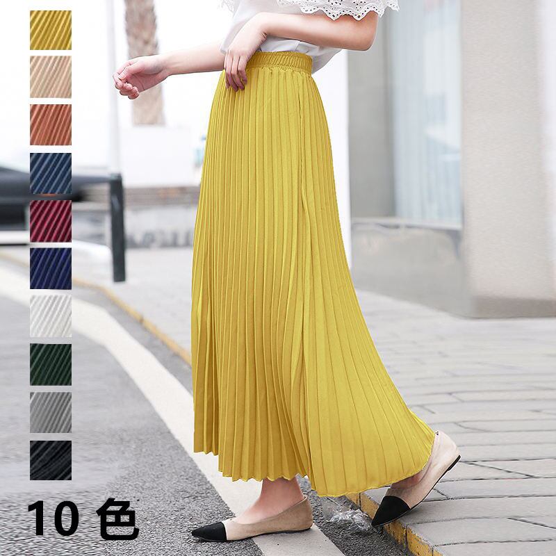 レディーススカート ロング丈スカート プリーツ ボトムス 着回し 気質(10色)
