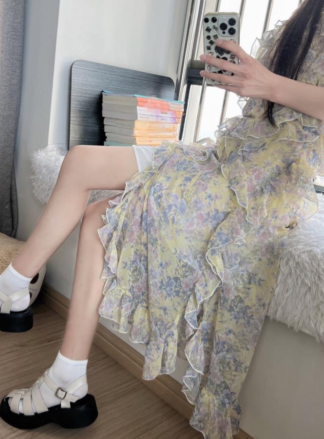 花柄吊りスカートは、春夏にピッタリのアイテムです。