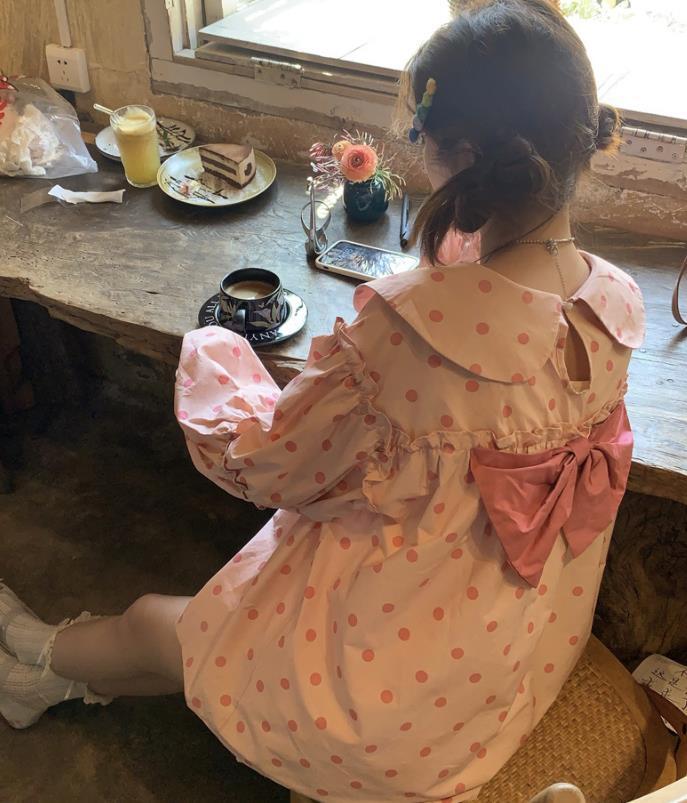 トップス 女 レディース 長袖 ドット シャツ ブラウス コート アウター