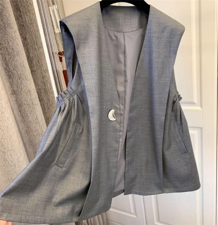 韓国ファッション カジュアル プリーツ Aライン スーツ ベスト 百掛け コート