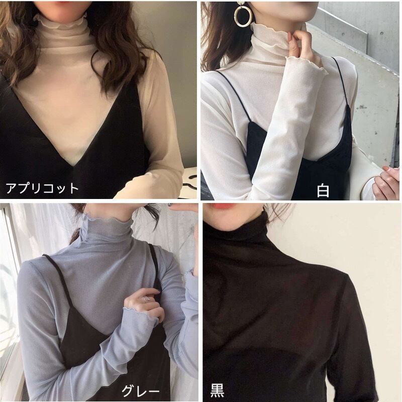 レディース トップス 長袖 レース タートルネック ファッション 4色 美ライン
