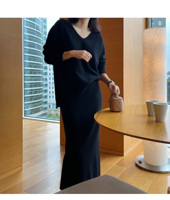 気品あふれる韓国系エレガントな雰囲気漂う、新作ニットシャツ+セミロングスカートのセット。ニットシャツは上品な光沢感があり、セミロングスカートは女性らしいシルエットが魅力。コーディネートが楽々なセットアイテムで、おしゃれ上級者に仕上げてくれること間違いなし。