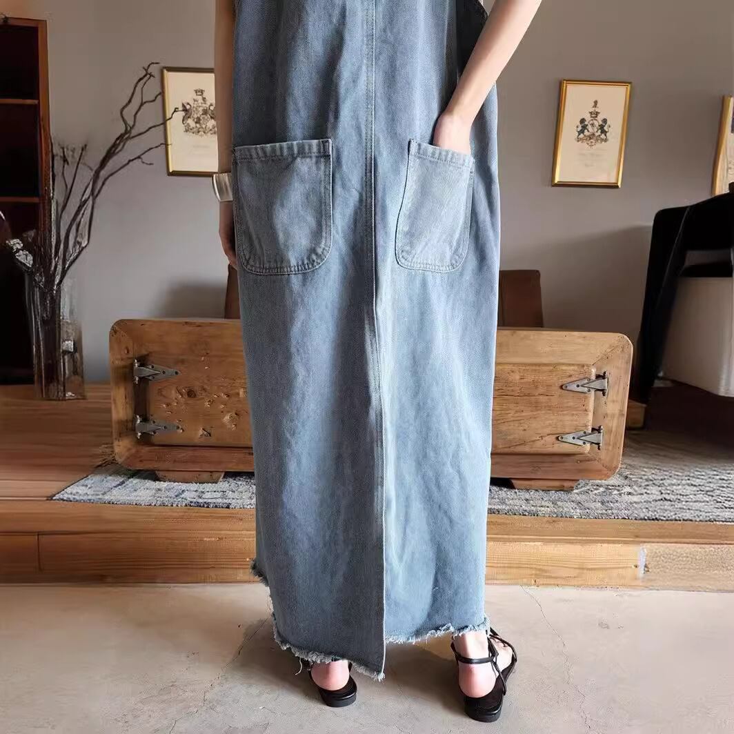 ロング丈ワンピース デニムワンピース キャミワンピ ノースリーブ レディース 着回し