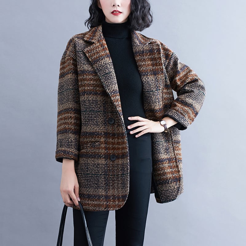 レディース 秋冬 新作 ジャケット コート トップス ロングスリーブ チェック柄上着 オーバー ゆったり
