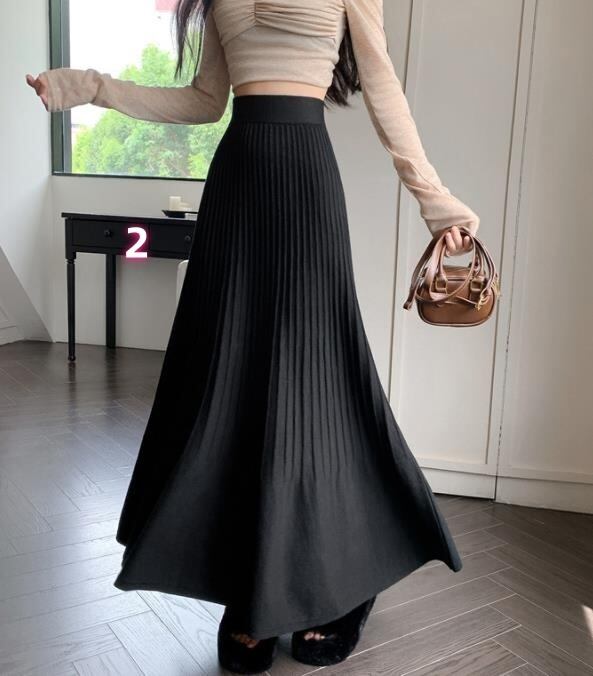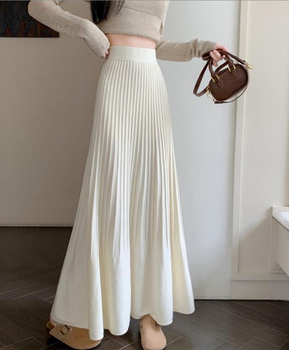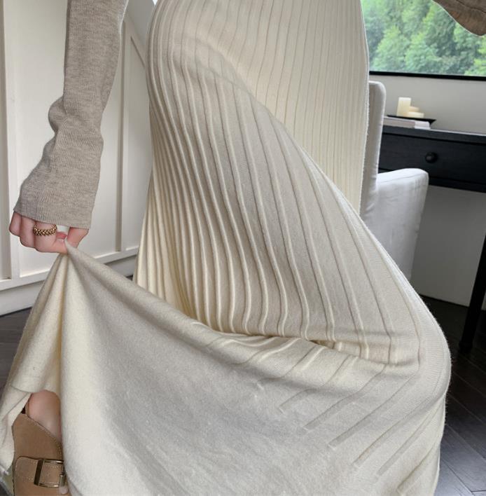 秋冬新作 ボトムス 女 レディース ハイウエスト ニット ロングスカート 台型スカート