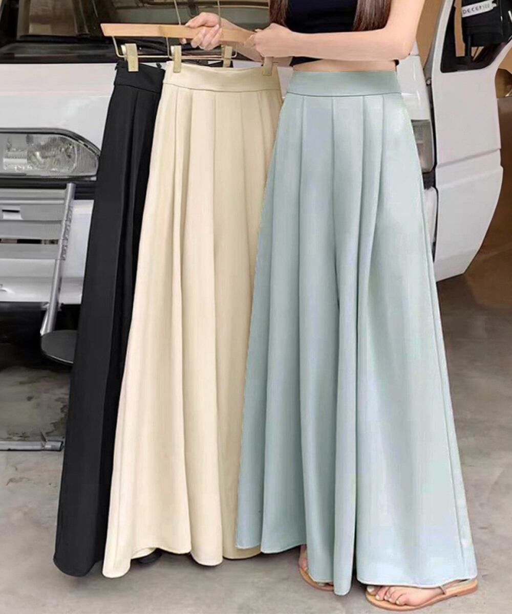 タック入りスカンツワイドパンツレディース