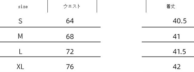 - [S] 着丈:約43cm ウエスト(バックゴム仕様):約62-80cm ヒップ:約90-100cm
