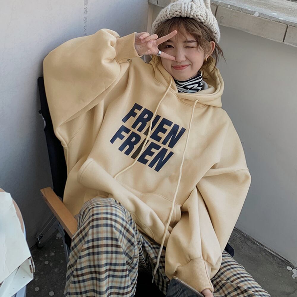 スウェットトレーナー フード付き 長袖 プルオーバー フロント 英字プリント 着やせ トップス 通学 韓国風 オルチャン