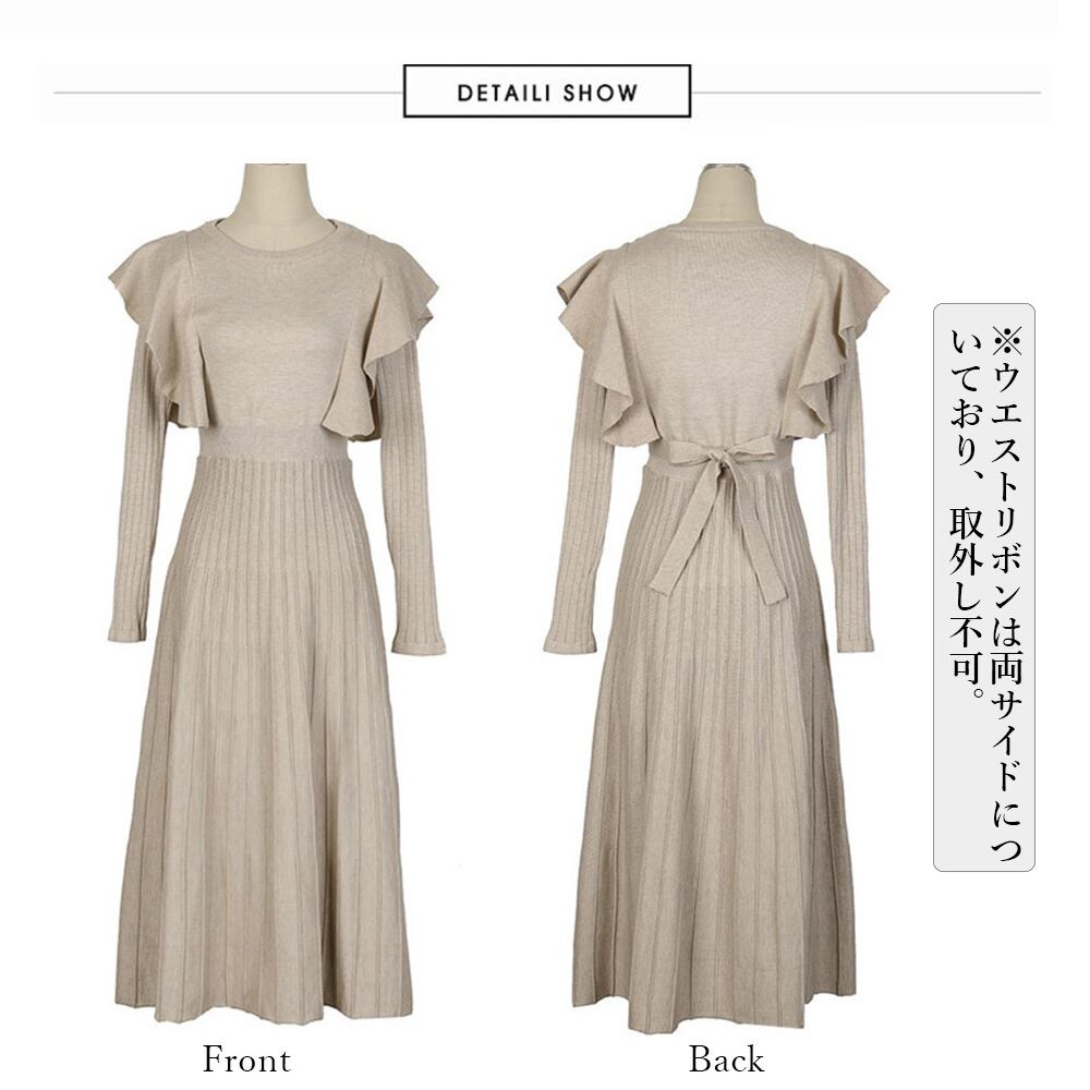 ショルダーフリルニットワンピース新作