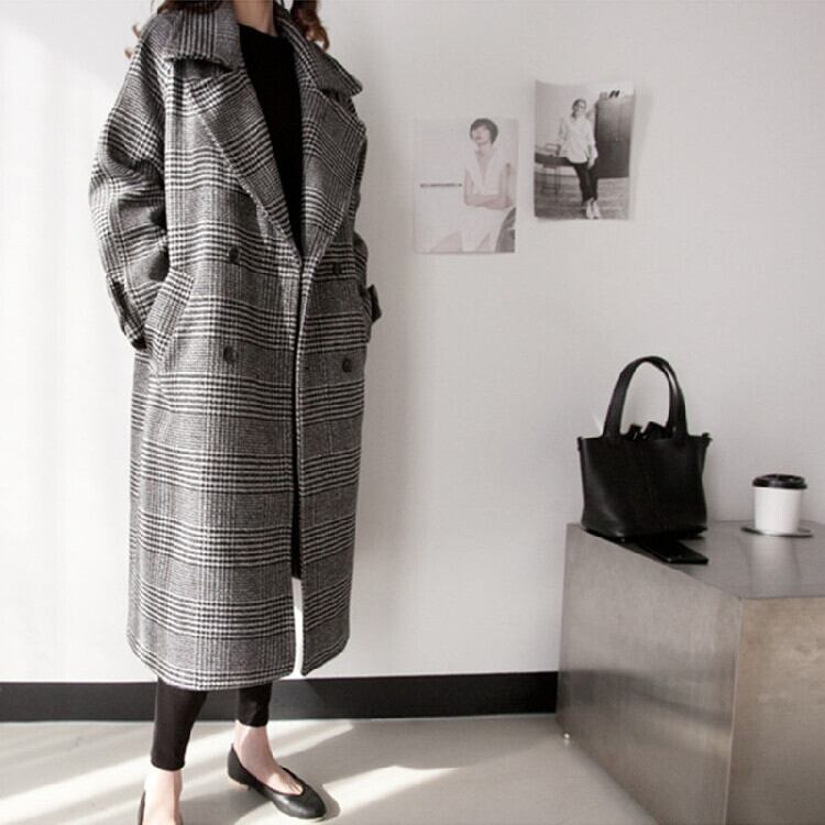 韓国ファッション中・長セクション チェック柄トレンチコート大きいサイズ 暖かい コート